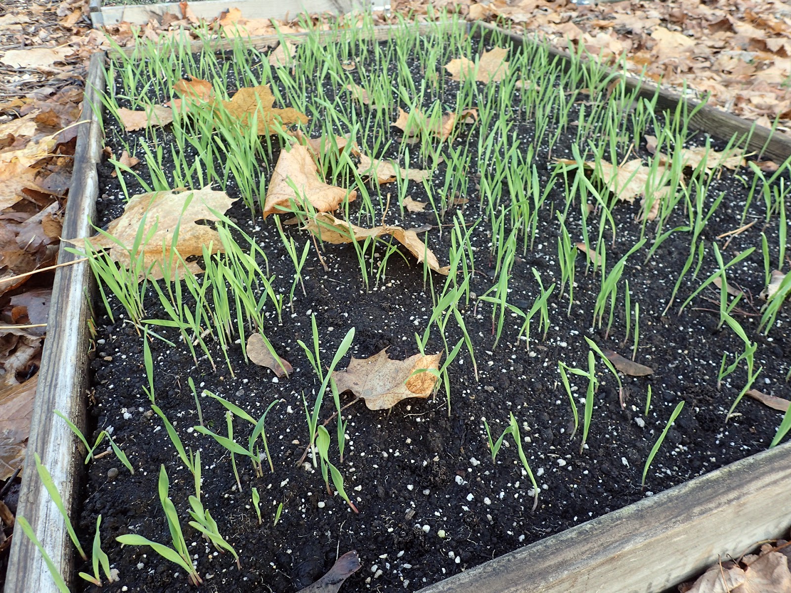 Na nowych grządkach zielony nawóz dopiero niedawno zaczął wschodzić. Podoba mi się jak robi to żyto ozime, nie stroi fochów, tylko sobie ładnie rośnie.